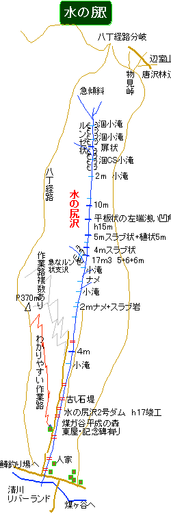 三峰山から発する谷太郎川の最下流で本流に流れ込む沢である。