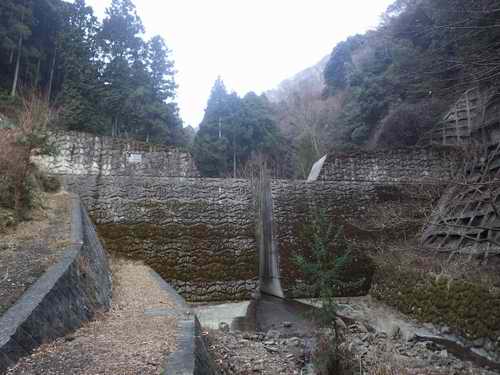 コケが着いて少しばかり色の褪せた今の水の尻堰堤