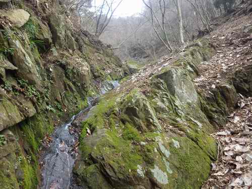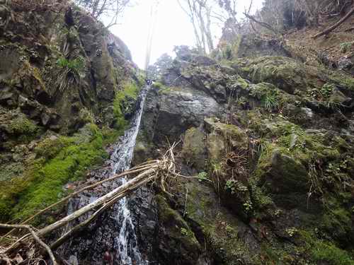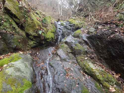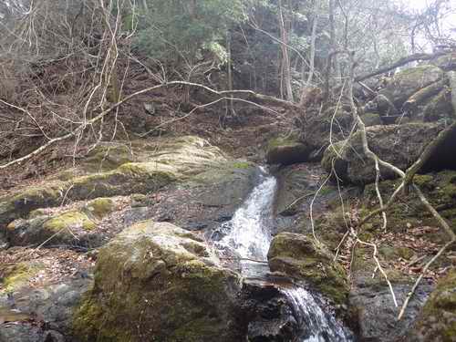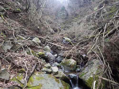 そこに着くと沢はまだ続いていて、二回くらいそんなのを繰り返して下に水量の多い沢が見えてきた。