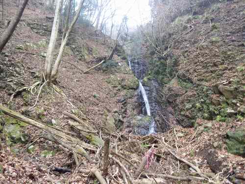 自宅6:15〜役場6:50〜水の尻橋7:00〜水の尻砂防堤7:05〜三段滝下7:40〜沢の終了8:55〜八丁経路に出る〜登山道着9:00〜三峰山北山頂9:30〜西方へP705から丸淵あたりに降りる予定が〜南西に降りて小唐沢中流域に下降9:40〜小唐沢橋10:20〜物見峠11:00〜煤ヶ谷11:40〜役場11:50〜自宅12:20 2016/03/05曇り