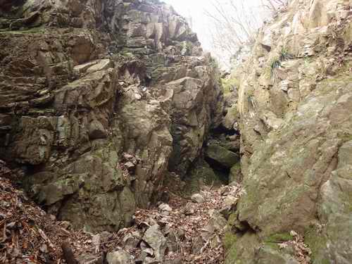 そして上の露岩の縁を登って上に抜けるのだ。