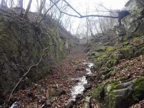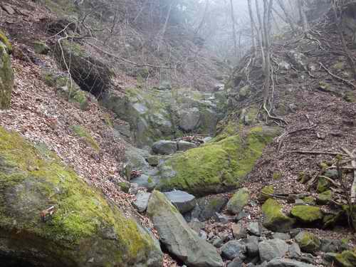 やはり、………下には水のない沢が見えてきて、