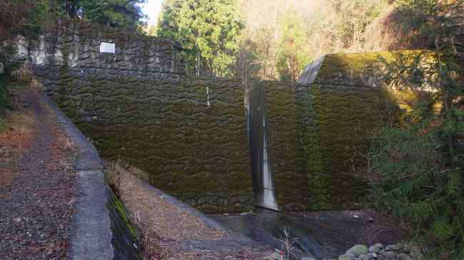 水の尻橋から山の方に入り、数戸を通り過ごして川沿いの舗装道を行けば水の尻2号ダムの下に出る。