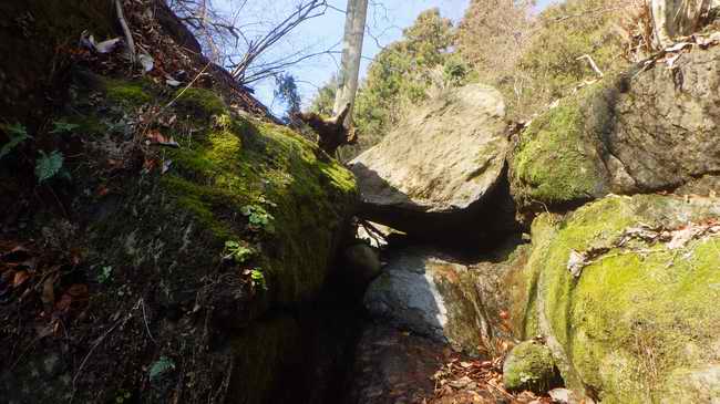 この大丸石はh16年以前にはなく、その後に上から転んできて挟まったらしい。