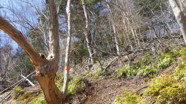 出だし部20mは急ではあるが、枯葉が厚く乗っているくらいだから、どうとでもなる。