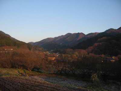朝日が周囲の山々にも家々にも当たり始めてしぶく輝く。