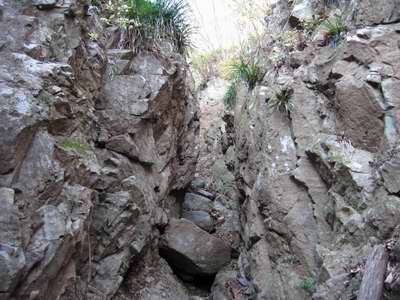 落ち口辺りは露岩が出ているが、浮き石を掴まなければの条件付きで難しい巻きではない。