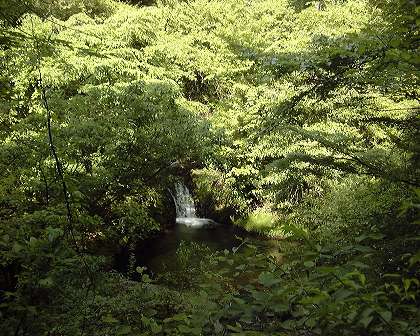 下は浅い瀬になっているし、あたりは草原で座っていても気持ちが良い場所だから、ここが交通至便な場所ならば子供達が釜上の2m程の滝から大飛び込みをきっとする。