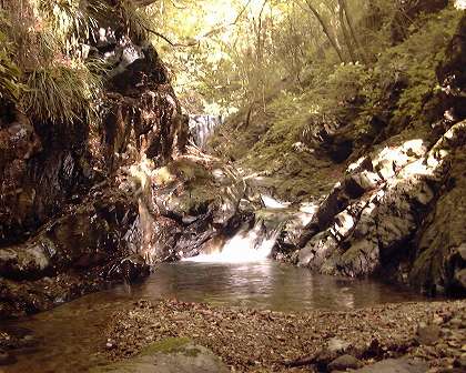 その間は両岸が切り立っていて沢は狭く、滝の落差は少ないが、いずれも大きな釜や淵を持ち、水に濡れずには直登するのは容易ではない。
