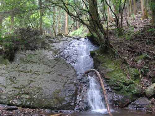仕事道をしばらく歩いたら下から小さく滝音が聞こえてくる。