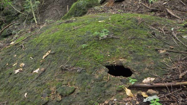 初めて来た当時の炭焼き窯は上に載って跳ねてもビクともしない頑丈さがあって、今でもその形だけは保たれているが、天井には10cm程の穴が開き、その周囲も薄くなっており、天井に乗ったらおそらく
