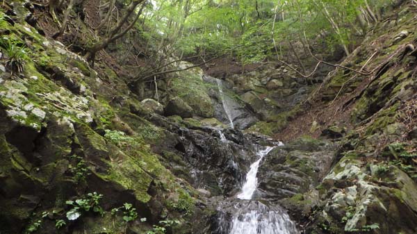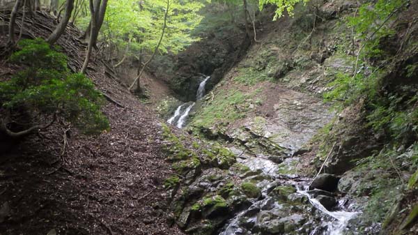 この滝が終わると、傾斜の増してきた沢は右に左に窪みが分岐していく。