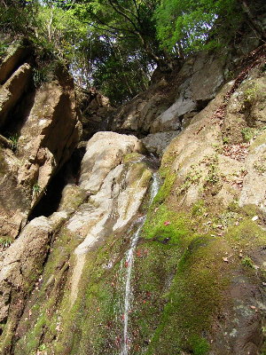 中間部を経て右にねじれ、続く上部は水の流れている面には水苔が這えているように見える。