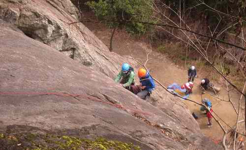降っていく人には見えはてないが、下には土曜日ともなればクライマーが列を成している。