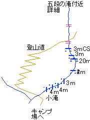 キャンプ場の案内板に書かれている五段の滝はここから始まる。