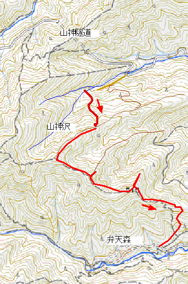 二の足林道途中車止めゲートから山神沢に沿って登っていくブルドーザーで拓かれた。