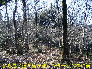 この道は平坦な藪のない快適な道でクロスカントリーでもしたくなるような一人の独占物にして絶対に他人には触らせたくはないと考える様な道である。