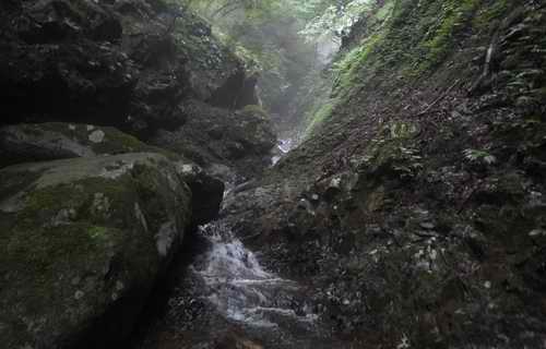かって炭焼きが多く営まれていて、渓流に沿って運搬用の経路が着いている。