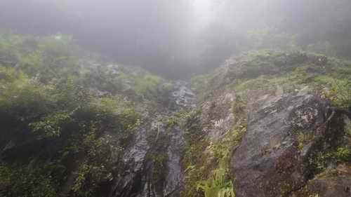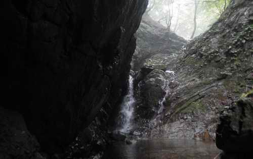 自宅6:40〜千頭橋7:07バス〜三叉路7:40〜16号橋8:10〜中津川河原8:10〜滝ノ沢〜二俣9:20〜左俣へ〜P720m下で稜線に出る9:55〜P720m(小ピーク)10:00〜そこから東北東尾根をハタチガ沢方向に降る〜ハタチガ沢着10:20(中流奥の8m幅広滝)〜ハタチガ沢を降る〜林道終点11:15〜16号橋11:45〜三峰登山道を少しだけで戻る〜三叉路12:20〜大棚沢広場(仏果山登山口)12:54バス〜千頭橋13:25下車〜自宅 20160715曇り(山中は曇り&霧)