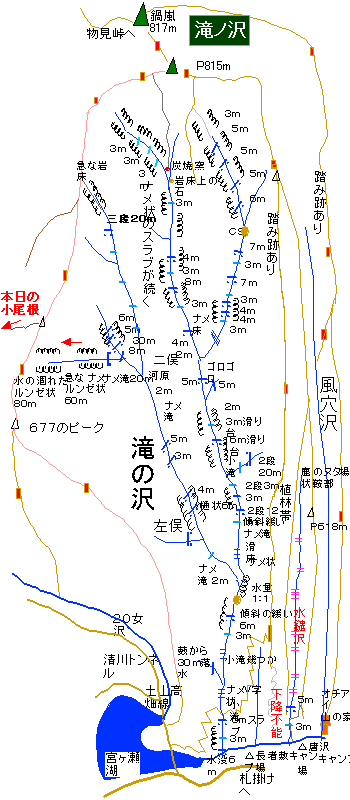 滝ノ沢は宮ヶ瀬中津川の支流で、現在なら村道15号橋の上流50mが出会いとなる。