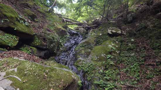 小滝3mを挟んで岩床が続き、それが終わると沢はゴロ石に直る。