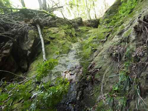 幾らか急になっていく道を少しだけ歩くと、周囲からは水が染み出す。