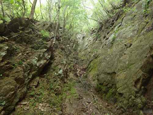 周囲は急な岩場で囲われていて、何処を登ろうとしても高く行かないと一帯を通り過ごすことは出来そうもないと思える。