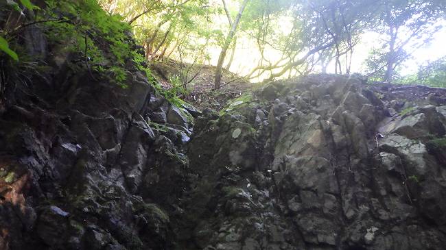 登りだしでは傾斜は強くないが、上部でホールドが苔によって隠されているのもあって、結構慎重にならざるを得ない。