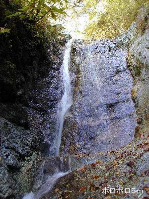その上にもナメがあり、水の中、足を遊ばせて登っていくと、左が小凹角の5m滝になる。