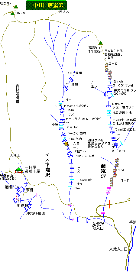 登り終わると沢は水量比1:1で二俣に分かれる。