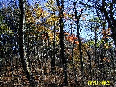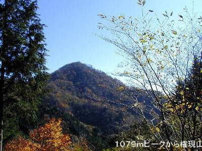 沢の詰めからは、しめって滑る樹林帯を右に左に煤竹をさけて『ズルッ』『ズルッ』を繰り返し、振り向けば、真っ白に輝く富士山を眺めて、息をつき、15分ほどで権現山1138mにつく。