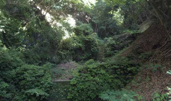 堤名を表す銘板は右岸側に着けられていて、そちらの経路を歩くなら否応なく目に入ってくるが、左岸側からは10mほど遠くなるのと、昭和52年謹製の銘板は幾分か苔に覆われていて、踏み跡程度の作業路の凸凹を気にしていると、堤に銘板が付いていることさえも見落としてしまうのだった。