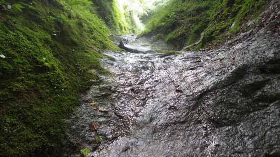 少し行くと連続の岩床となり、岩床は小さくくねって上の山腹に食い込んでいるらしいが、覚えのあるS字ではない。