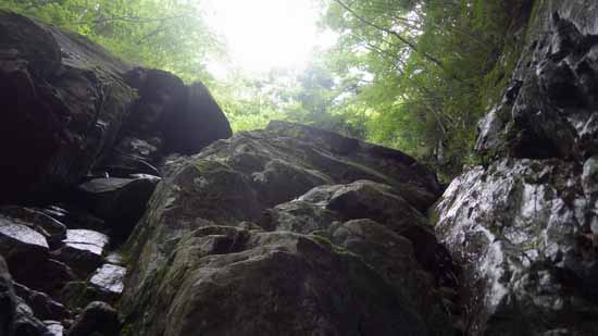 S字滝自体は綺麗なナメだが、一番始めに来たときは岩がぬるぬるしていて、滑るのではないかとそれが気になってスラブ岩を膝行ってヒヤヒヤしながら登った。