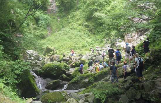 夏場の本棚・下棚は夏休みキャンプしている人等のハイキングの場となっているらしく、二つの滝壺にいた■十人を超える子供とお世話係は滝修行遊びにはしゃぎ、あるいは見飽きたとでもいうように、集団から目線を外して寂しい仕草の子も中にはいて、ともかくも大にぎわいである。