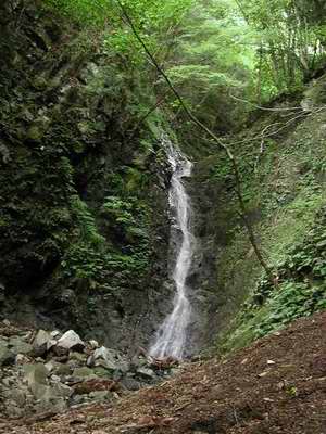 自宅6:10〜本厚木6:36〜松田7:23JR〜谷峨7:46バス〜箱根屋沢橋8:25頃〜F1 8:30〜15m滝9:45〜ナメ滝部を終え植林帯へ10:15〜仕事道〜屏風岩山から大滝口への作業道へ10:25〜林道へ降りる10:40〜大滝口バス停10:50_隧道内で雨宿り_11:05バス〜谷峨11:47JR〜新松田12:04〜本厚木12:35パンクしたパパチャリを引きずって自宅へ13:00着 20060702 朝方は天気が良くなる方向の曇りだと思ったのに尾根に抜け出たところからぽつりぽつりと来てバス停で待っていたら大雨になってもトンネルで待避したのでこれっぽっちも濡れることのなかった梅雨の一日だった。