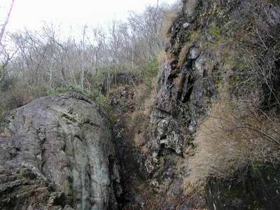 だから露岩の左手の砂礫窪に飛び降りて、おおよそ落ち口の高さまで登ったら右手に寄っていく。