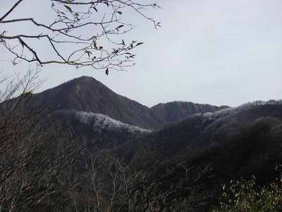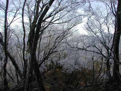 稜線だけ霧氷だ(左の高い部分は蛭ヶ岳)