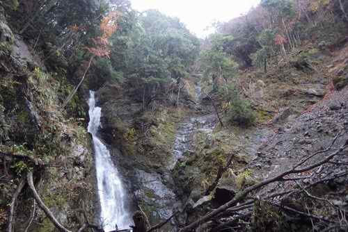 ここからの水流の多くは下の滝の手前で砂の層に吸い込まれてしまい、大雨の時などの水吸収のキャパシティオーバー分だけが溢れ出て涸棚を落下するらしい。