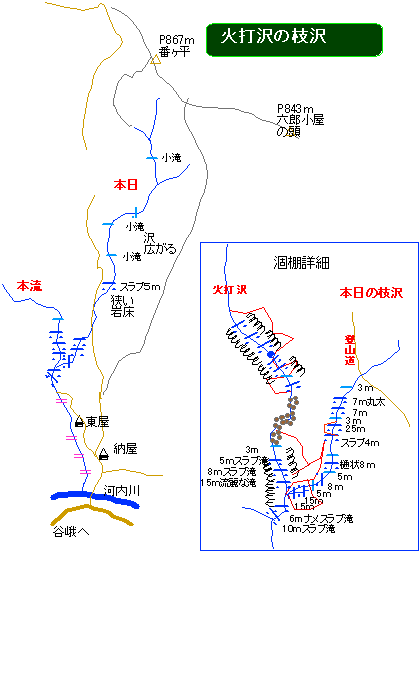 でも火打沢に行ったことがある人なら、F3の滝壺の所で、右に分かれて聳え立つ高い涸棚を見ることになる。