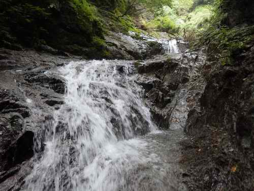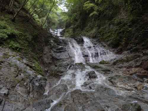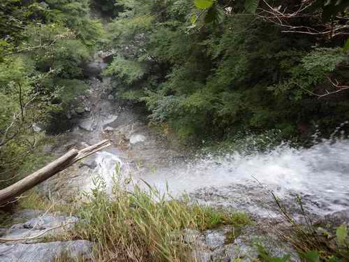 自宅6:10〜本厚木6:36〜松田7:23〜谷峨7:50〜大滝橋8:25〜マスキ嵐沢出会いから本流へ8:45〜地獄棚下9:05〜雨棚9:15_20〜地獄棚下9:25〜右側の立木帯を巻く〜落口9:35〜二俣10:00〜作業路で一軒小屋に戻る10:15〜次へ2015/08/08 曇り 時々僅かに日を感じる
