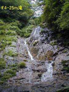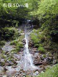 それでも右俣を少し進むと左岸から10m程の滝があって上部に消えている。