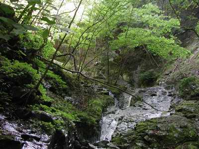 自宅6:20〜本厚木6:36〜松田7:23〜谷峨7:46〜大滝峠入り口8:20〜マスキ嵐沢8:45〜遡行〜小尾根に9:42〜権現山からP1072mの稜下を通り鬼ヶ石沢中域経由一軒小屋への経路に出る(権現山から西沢に下る登山道まで200m程の地点)9:45〜200m程でマスキ嵐沢と鬼ヶ石沢分界尾根(一軒小屋に降りることが出来るが踏み跡は薄い)〜更に1km程でP1072m下9:55〜300m程で鬼ヶ石沢中域へ〜1.5km程で一軒小屋へ10:15_20〜500m程で地獄棚へ10:25〜雨棚10:30_11:10〜地獄棚下11:15〜大滝沢大滝(登山道脇キャンパーが昼寝中見学)から大滝峠入り口11:45〜中川温泉〜小塚12:15バス〜谷峨12:57JR〜新松田13:14〜本厚木〜自宅13:50頃 2006/08/06 空は晴れて雲一つ無いのに湿気のもやがかかり遠くは見えない暑ぼったい日でした。