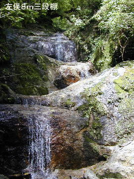 続く三段8m滝は快適な登りである。