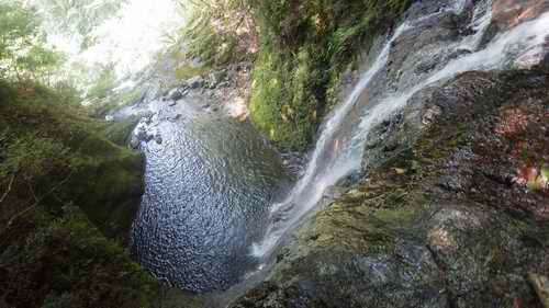 その記憶に従って右側の緩い基部を登り、シャワーのかかる岩に手を掛ける。