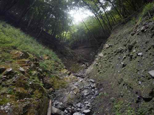 これは棚沢の中流域下部に堤防群を作るための重機用作業道だ。