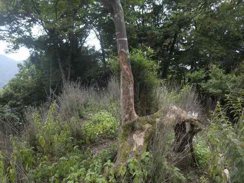 経路があったと思うそこらは一面の夏草に埋まり、そのなかに猪が踏んだと思われる跡が草を左右に分けた地面の所々に見えていて、俺はその跡を追って歩く形になった。