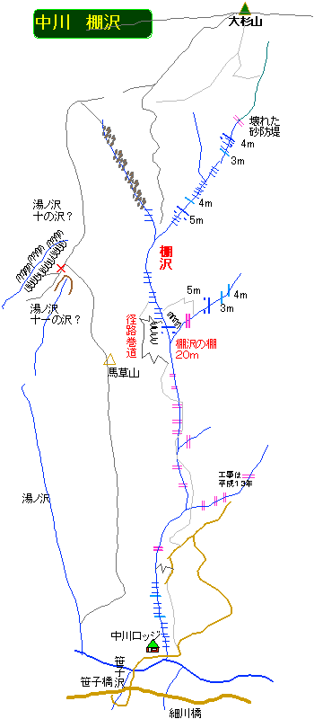 この大棚の下から直ぐの所で沢は左右に分かれている。